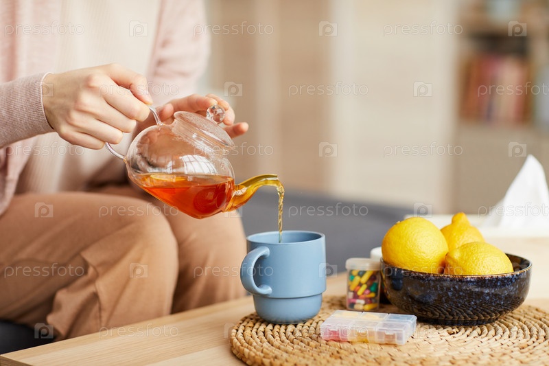 Женщина пьет чай