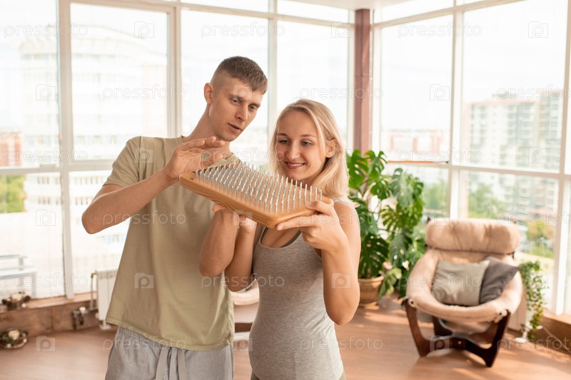 Молодая улыбающаяся спортсменка и ее фитнес-тренера смотрят на йогу с ногтями