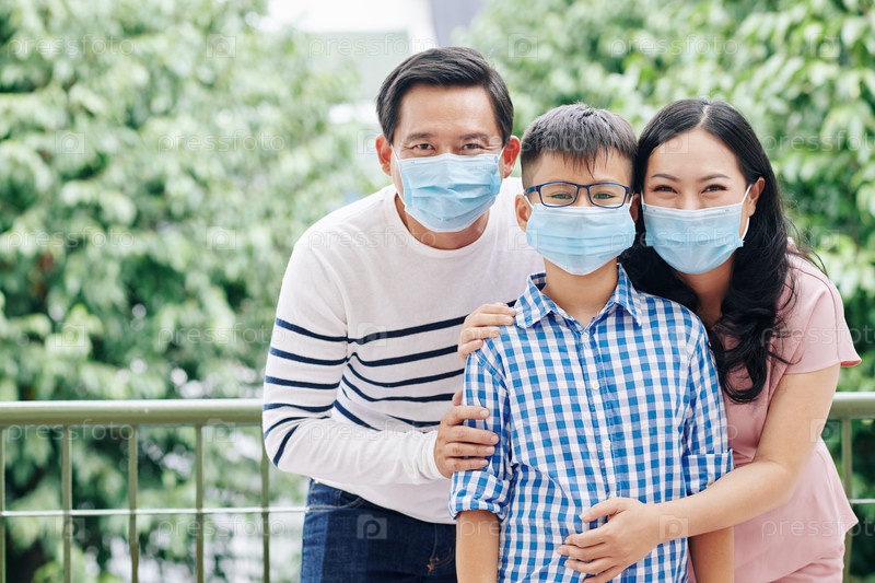 Семья в медицинских масках