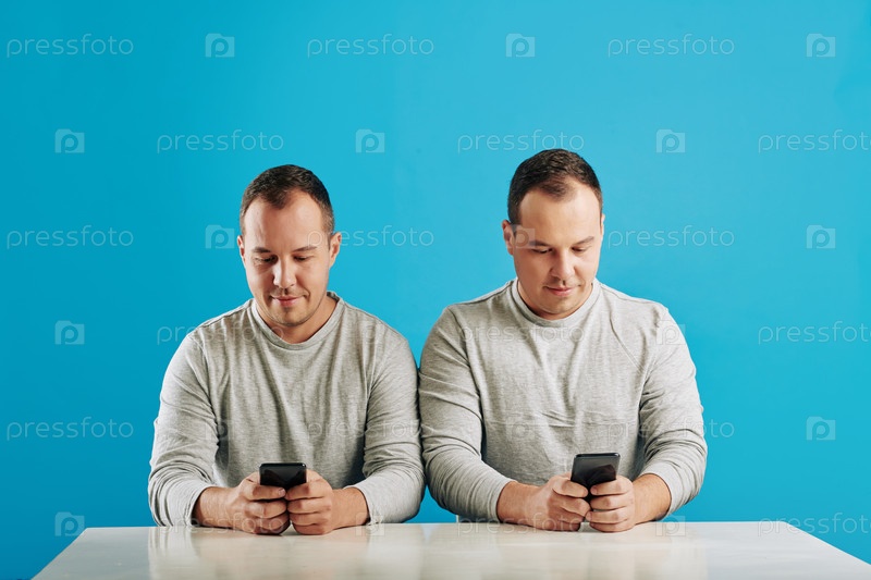Братья-близнецы используют смартфоны