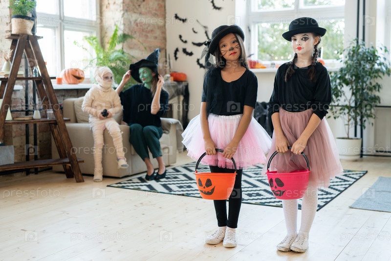 Мимирует девушек с ведрами для сладостей