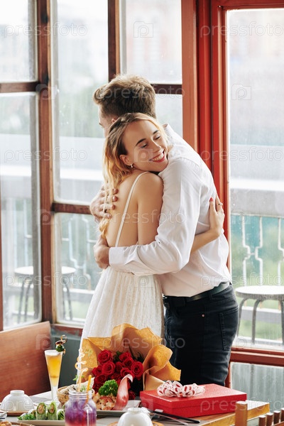 Мужчина и женщина обнимаются счастливо