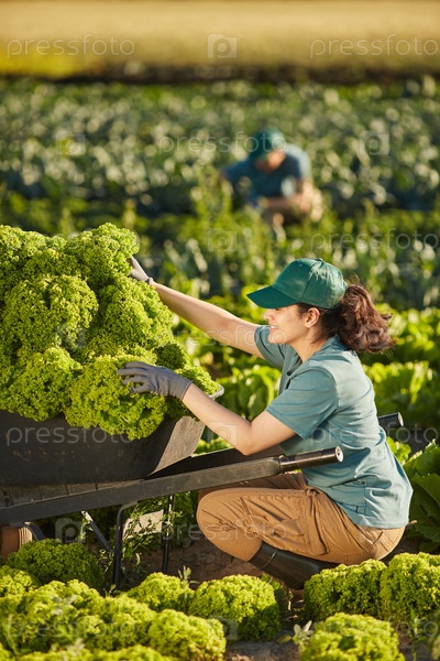 Улыбающаяся женщина работает на овощной плантации