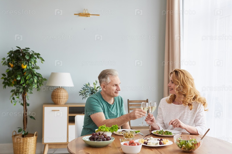 Зрелая пара наслаждается ужином дома