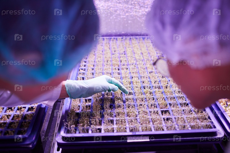 Работники, осматривающие посевные растения