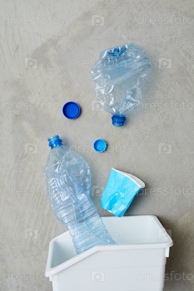 Сортировка пластика в мусорной корзине