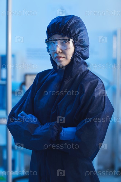 Женская химик в защитном костюме
