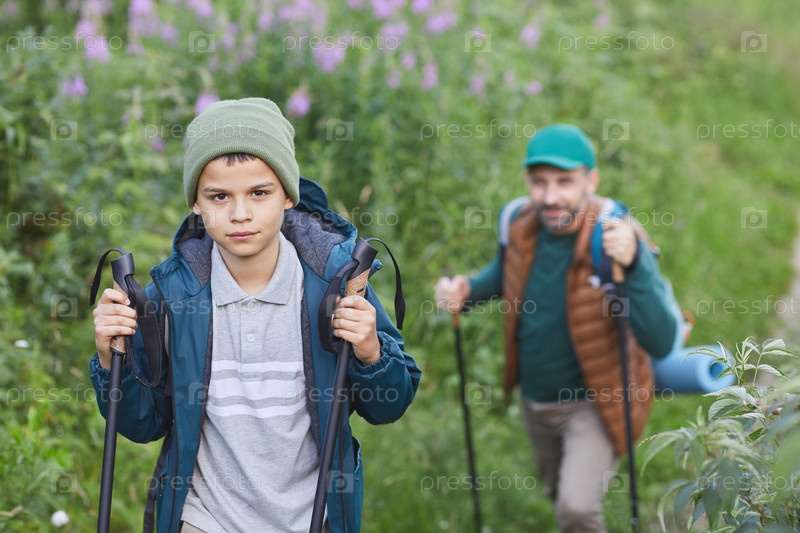 Мальчик ходит в поход с отцом