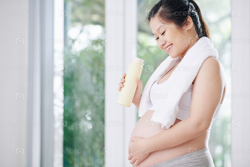 Беременная женщина пьет воду