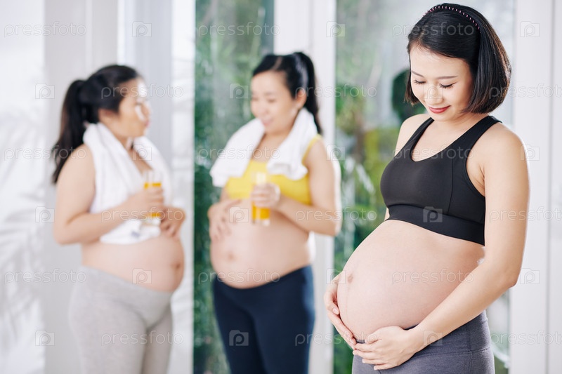 Беременная женщина прикасается к своему животу