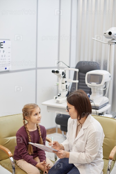 Маленькая девочка посещает офтальмолога