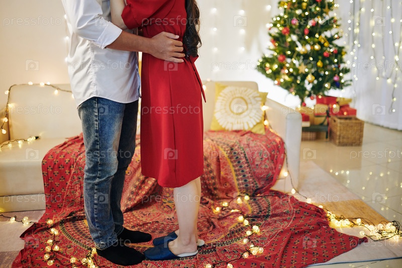 Пара целуется в канун Рождества