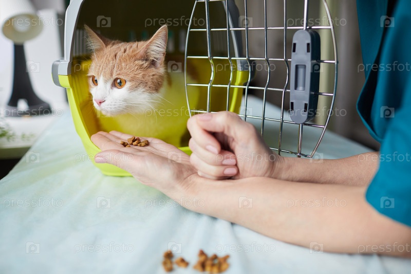 Доктор кормит животное
