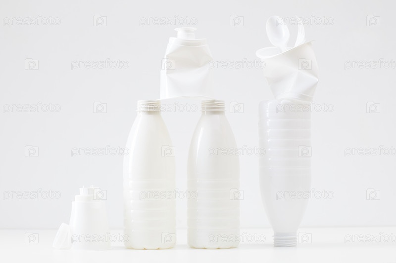 Бутылки с молоком на белом фоне