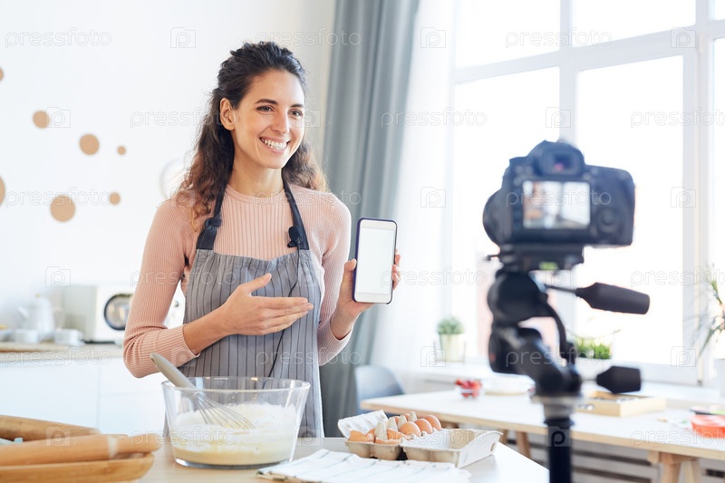 Продовольственный влогер демонстрирует приложение для смартфонов