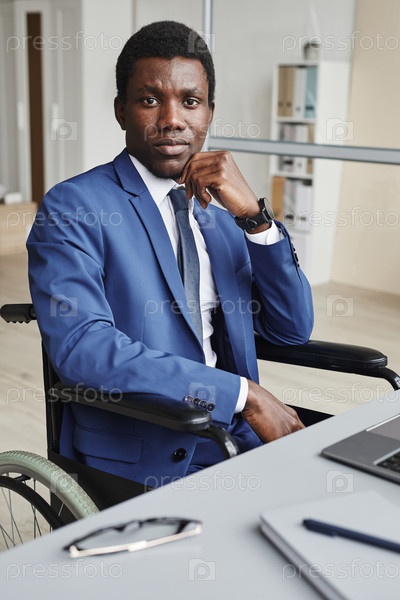 Инвалидный африканский бизнесмен в офисе