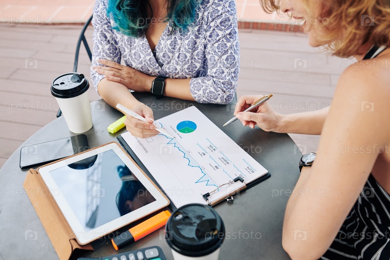 Деловые женщины обсуждают финансовый отчет
