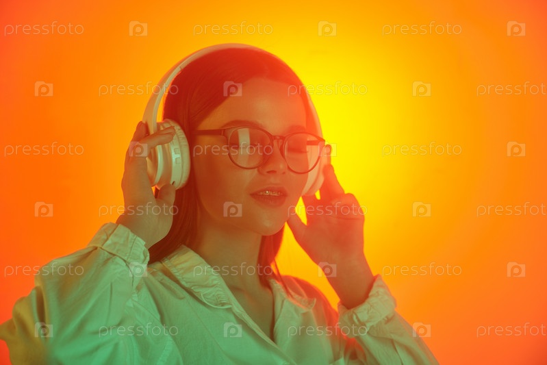 Счастливая женщина в наушниках
