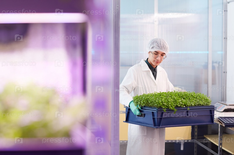 Ученый с саженцами в лаборатории
