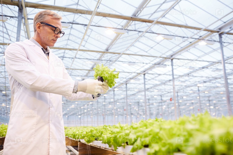 Ученый, изучающий овощи на плантации