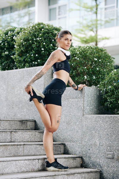 Фитная женщина растягивает ноги