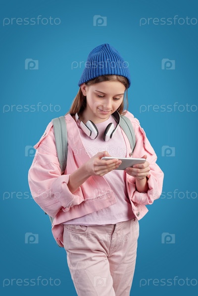 Хипстерская девочка-подросток смотрит видео на телефоне
