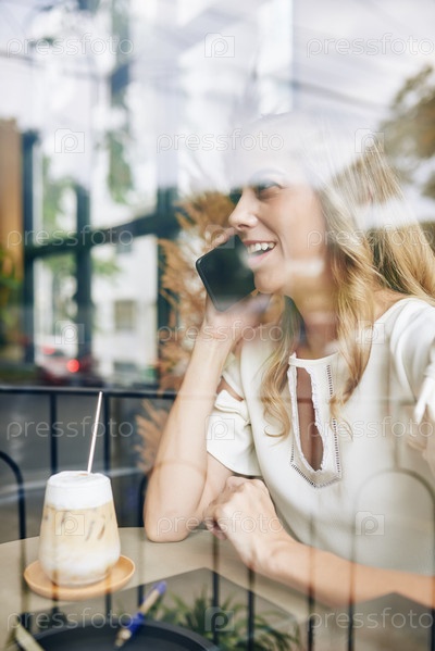 Позитивная женщина, разговаривающая по телефону