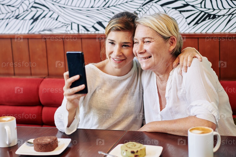 Мать и дочь делают селфи