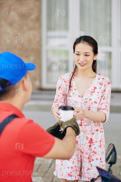 Женщина, получающая чашку кофе