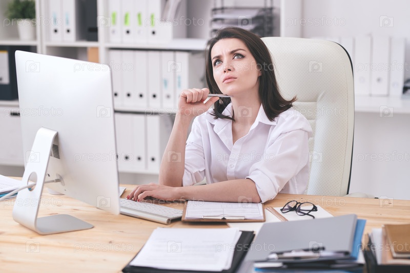 Вдумчивая леди в офисе