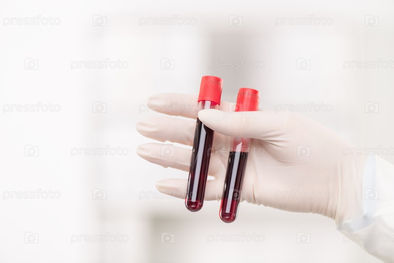 Перчатковая рука современной женщины-клиницистки, держащей две бутылки