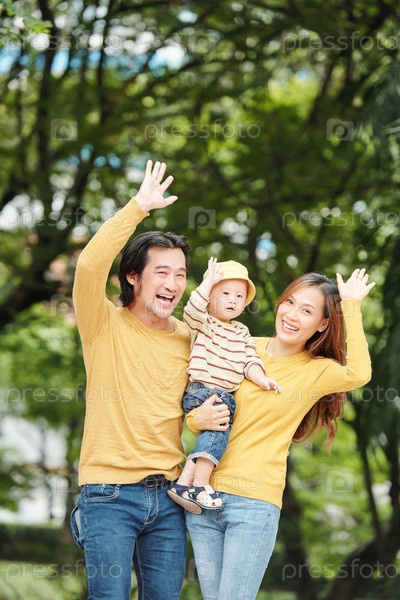 Семья машет руками