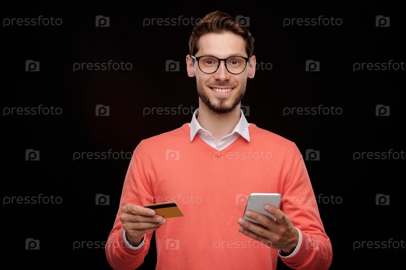 Молодой человек, использующий онлайн-сервис транзакций