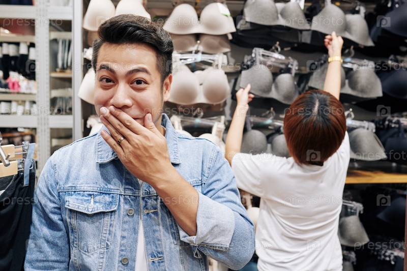 Стыдливый человек в магазине нижнего белья Singerie Store