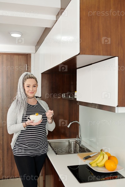 Женщина ест закусочную кашу