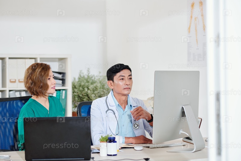 Медицинские работники смотрят видео на компьютере