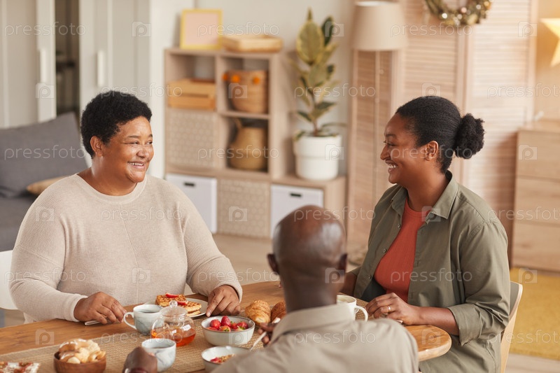 Афроамериканская семья наслаждается завтраком