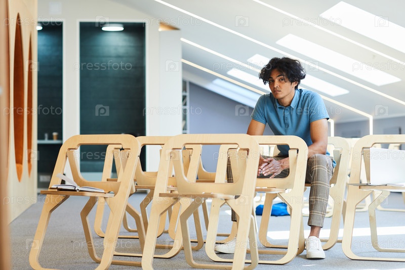 Вдумчивый парень в лекционной комнате