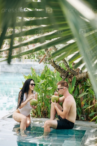 Пара с кокосовыми коктейлями