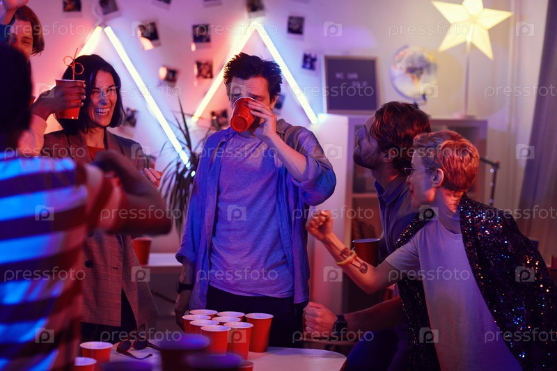 Друзья играют в пивной понг