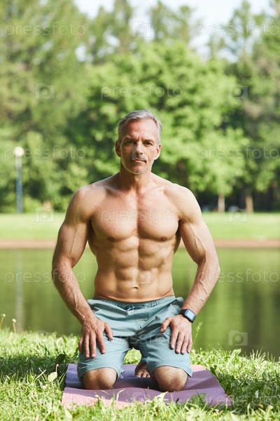 Мускульно связанный мужчина в парке
