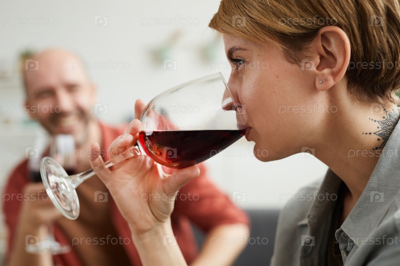 Женщина пьет вино