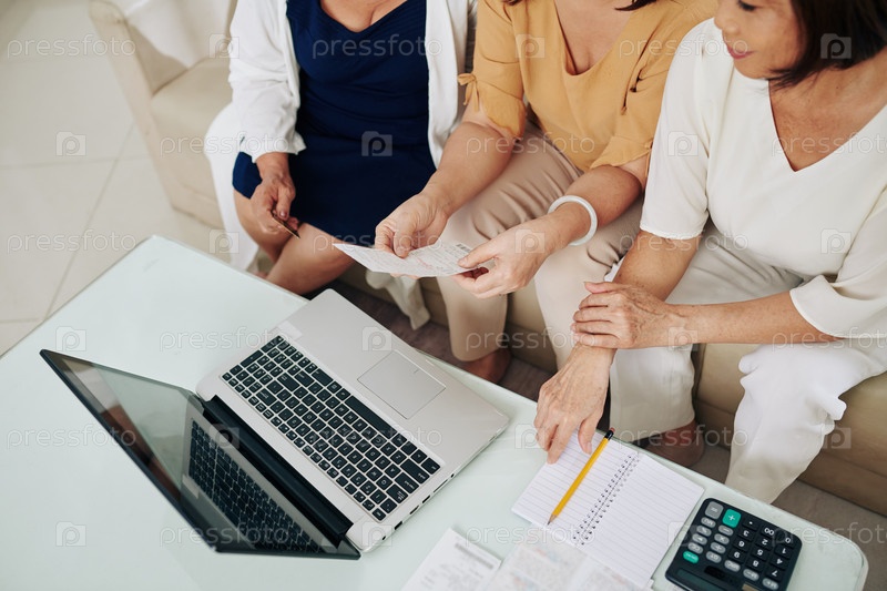 Пожилые женщины платят счета