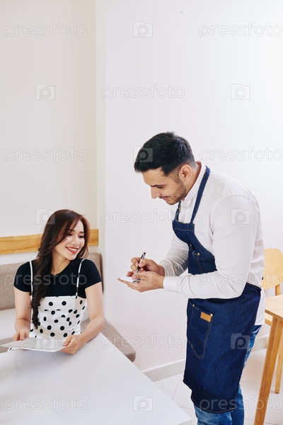 Официант принимает заказ от гостя