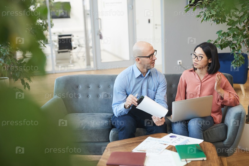 Азиатская бизнесвумен разговаривает с менеджером по стажировкам