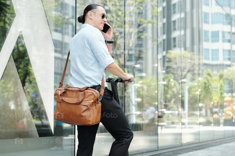 Молодой предприниматель звонит по телефону