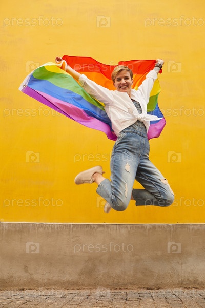 Счастливая женщина прыгает
