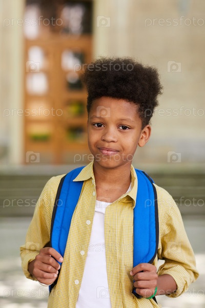 Афроамериканский школьник с рюкзаком