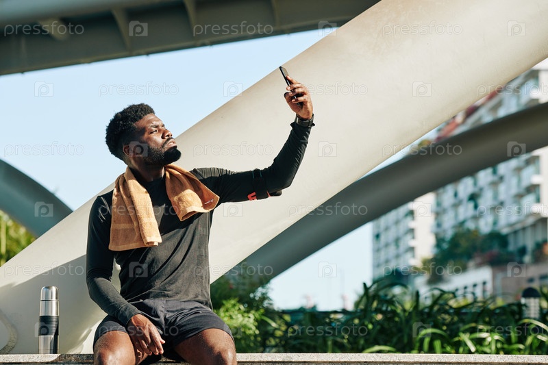 Мужчина-фитнесмен делает селфи