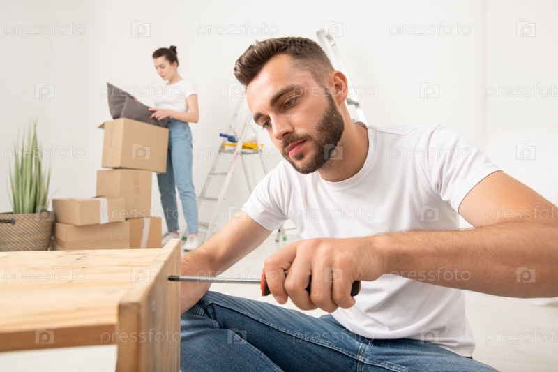 Сосредоточен на сборке мебели